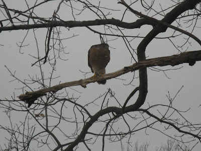 We also had our first ever in our lifetime CONFIRMED sighting of a Red-Shouldered Hawk! The crows drew our attention to it. They were making so much noise outside and then we saw them dive-bombing a hawk. We were able to make out the distinct markings on the chest and wings to determine it's a Red-Shouldered Hawk. Very exciting for us, especially at this time of year!